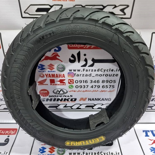 لاستیک 300/10 سنتوری ساخت چین یک انتخاب مطمئن و ایمن برای موتورسیکلتهای پاکشتی و .. است. این محصول که یکی از تایرهای پرفروش کارخانه سنتوری به شمار میرود، از تولیدات داخلی این کارخانه است. طراحی شیارهای مناسب بر روی لاستیک 300/10 سنتوری موجب این شده که در عین تحمل وزن مناسب برای این دسته از موتورسیکلتها، از چابکی سواری موتور شما کم نشود. چسبندگی بالا به سطح جاده، این محصول را مناسب استفاده روزمره و شهری کرده است.نرمی راندن شما از مواردی است که در حین طراحی و تولید لاستیک 300/10 مورد توجه و نظر کارخانه سنتوری قرار گرفته است. پس هیچ جای نگرانی بابت لیز خوردن و کاهش کنترل و فرماندهی موتورسیکلت خود روی سطوح آسفالت و سایر جنسهای جاده و خیابانهای شهری نخواهید داشت.
